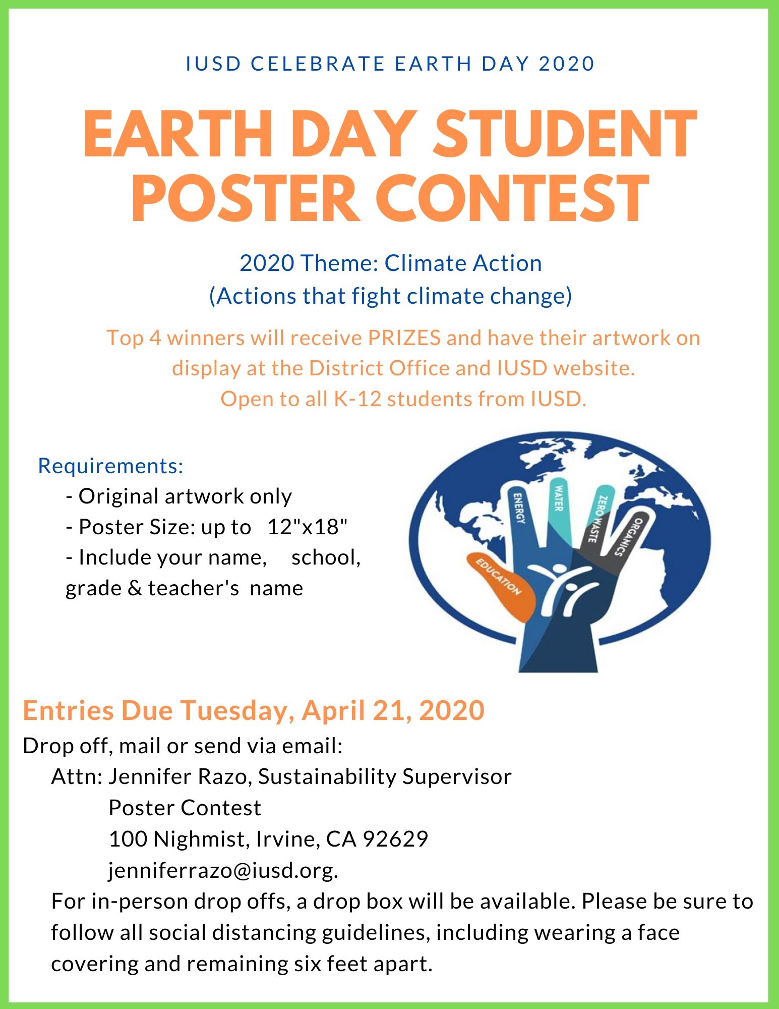 irvine unified on twitter to celebrate earth day next week iusd s sustainability team is holding its annual student poster contest this year s theme is climate action the contest is open to all