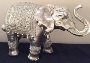 Elefant silber Deko groß Figur Kunststein silberfarben Elefantenfigur Orient | eBay