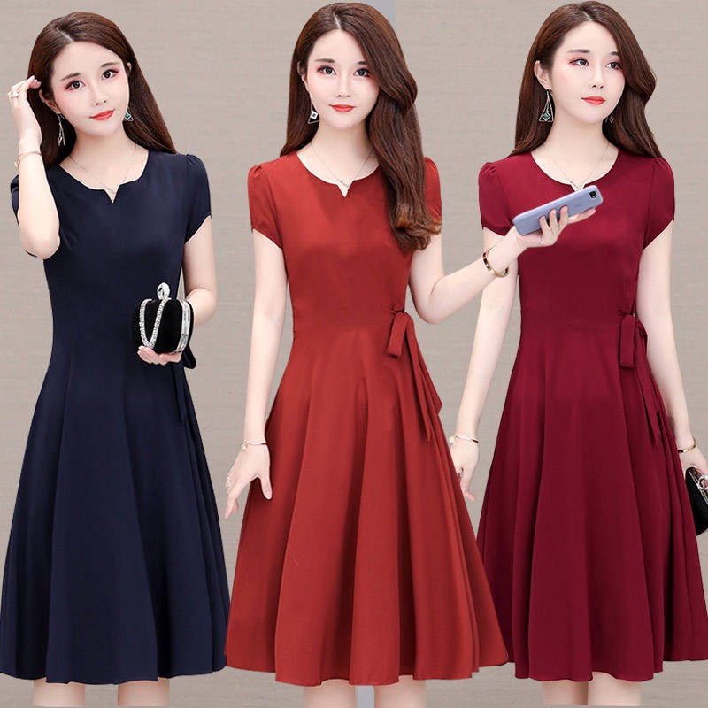 Sfsdrt Women Girls Solid Short Sleeve A Line Dress Casual Summer Dress Clothes Dress Women Dinner Casual Long Night Malaysia Korean Wedding Plus Size Fashion Nary Lazada