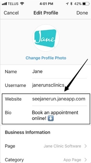 Link Online Booking to Instagram | Jane App - Practice Management Software for Health & Wellness Practitioners