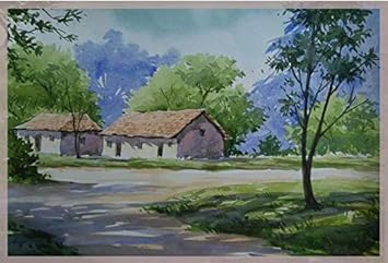D'ARTISM Watercolor Painting Early Morning Village Painting: Amazon.in: Home & Kitchen